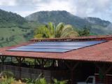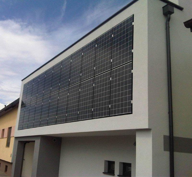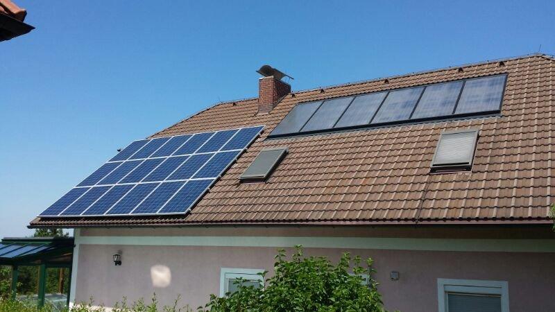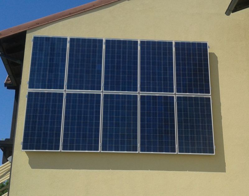Bild zeigt ein erfolgreiches Projekt in Costa Rica. (Es handelt sich hier um eine Inselanlage mit 30kWh) u. Fassadenintegrierte Anlage in Mannswörth